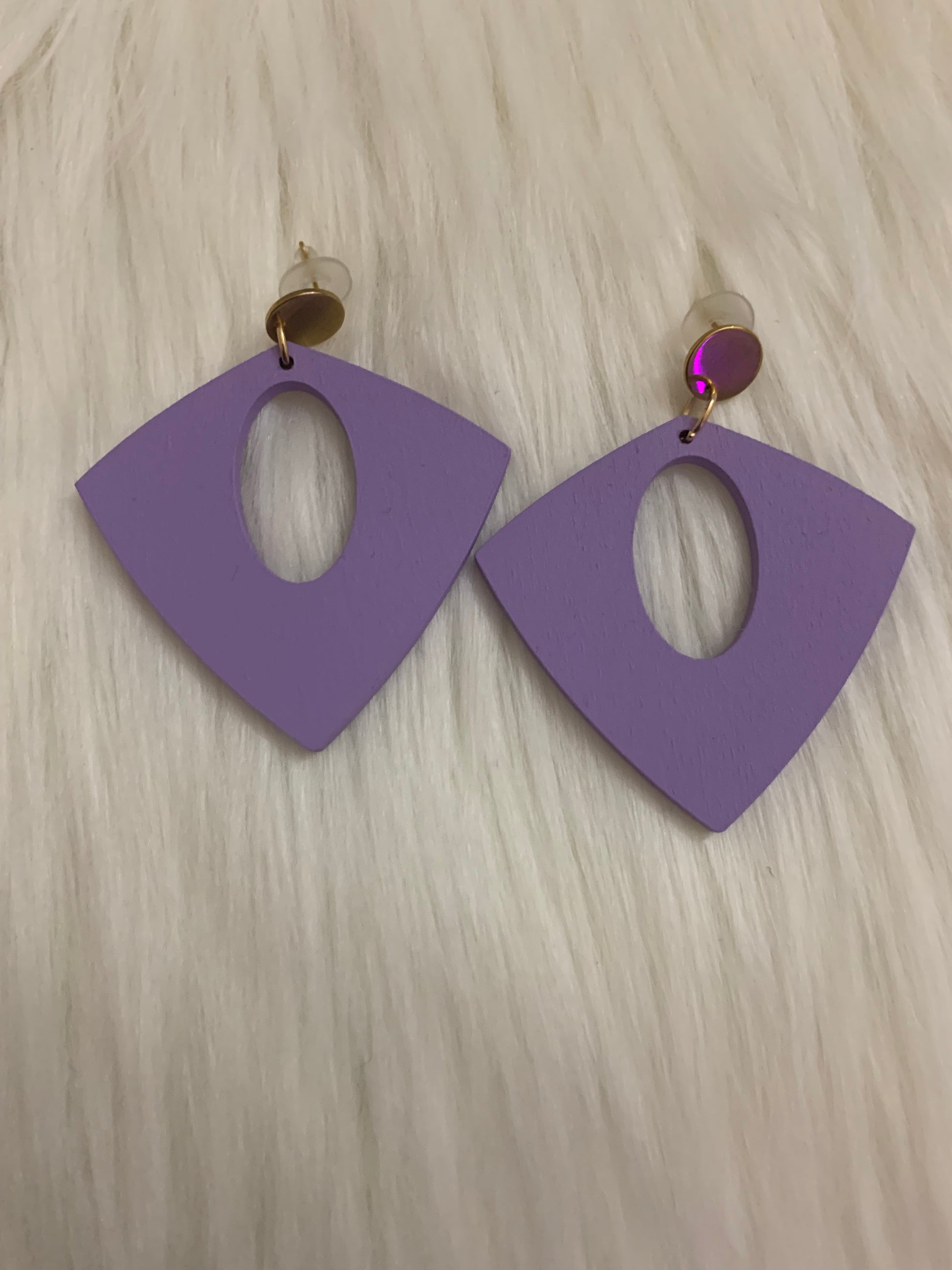 Light Purple Geometric Wooden Stud Earrings