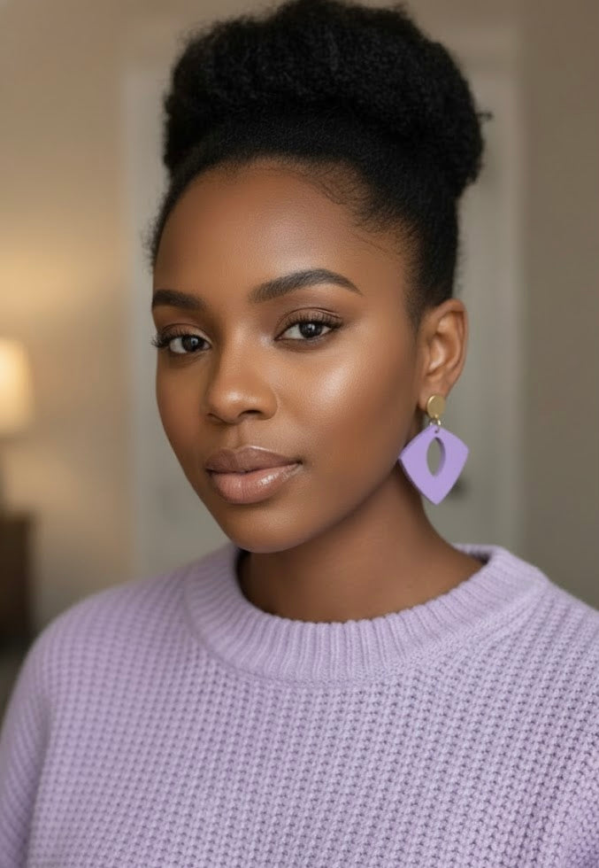 Infuse your look with a beautiful splash of color using these elegant and fun geometric earrings. Featuring a sophisticated light purple hue, they are made from lightweight wooden and finished and finished with a smooth, non-glare matte texture.